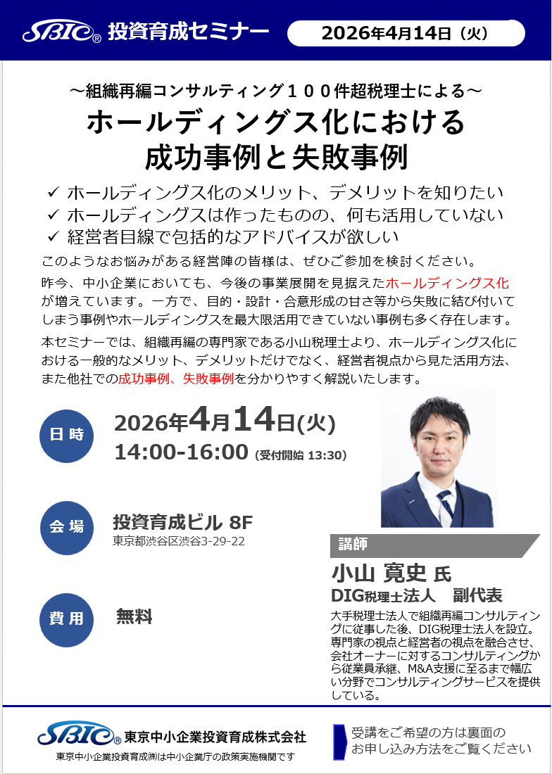 ~組織再編コンサルティング100件超税理士による~ホールディングス化における成功事例と失敗事例2026/04/14~組織再編コンサルティング100件超税理士による~ホールディ