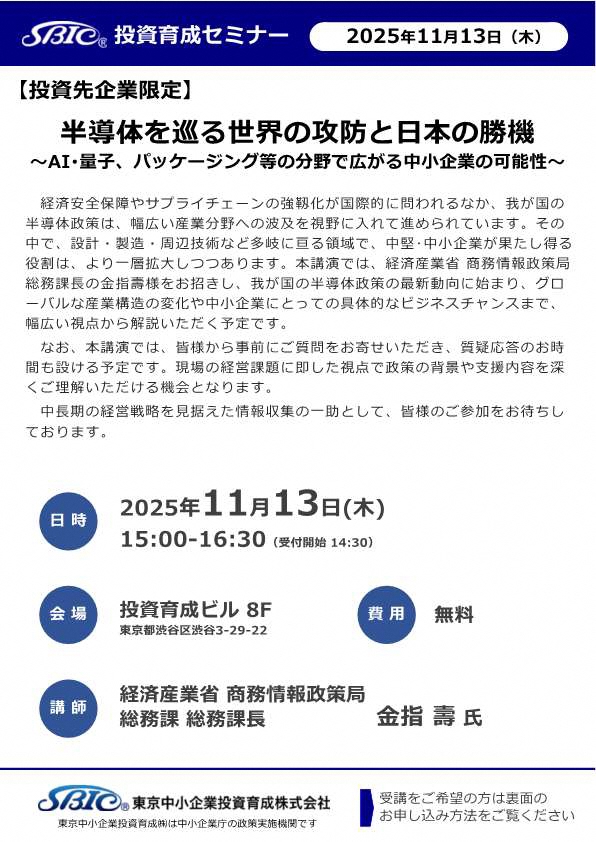 【投資先限定】半導体を巡る世界の攻防と日本の勝機~AI・量子、パッケージング等の分野で広がる中小企業の可能性~2025/11/13…