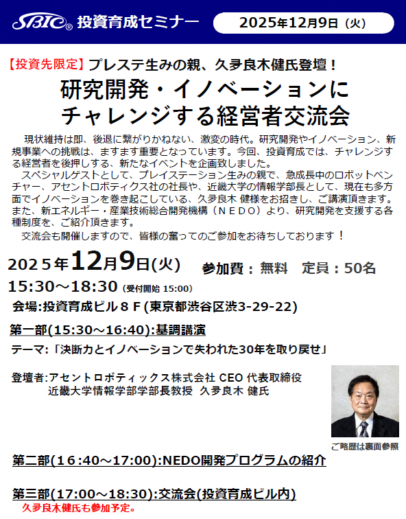 【投資先限定】研究開発・イノベーションにチャレンジする経営者交流会2025/12/09【投資先限定】研究開発・イノベーションにチャレンジする経営者