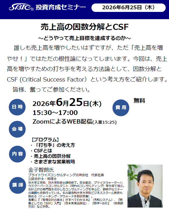 【Zoomによるライブ配信】売上高の因数分解とCSF2026/06/25売上目標管理のスキル開設