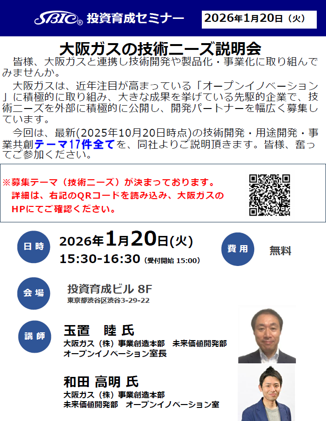 大阪ガスの技術ニーズ説明会2026/01/20大阪ガスの技術ニーズ説明会