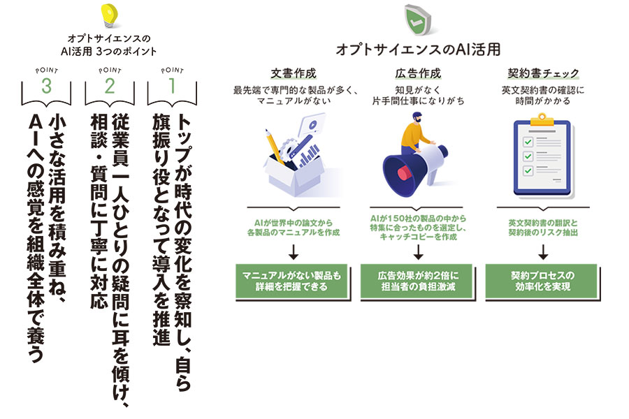 AI活用が進みつつあるオプトサイエンスだが、「社内全体に浸透させるにはまだまだ時間がかかります。今は僕が使いまくって啓蒙している段階です」と宍野社長は話す。