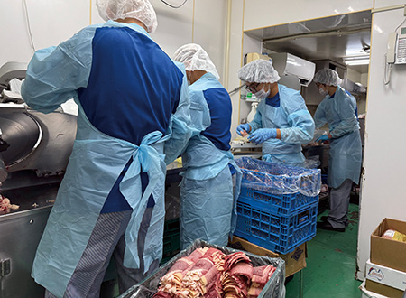 2010年からは、ハラール肉の加工業もスタート。同社はさまざまなインドネシア料理のシーズニングを扱っているが、メニューごとに適した肉の部位は異なる。消費者はどこかでハラール肉を購入しなければならないのだから、肉も取り扱えば喜ばれると考えたのだ。食肉加工の経験があるパキスタン人の友人に、二宮氏自ら、カットの仕方や機材の洗浄の仕方などを教わり、販売を始めた。衛生面には非常に気を使い、定期的に抜き打ちで専門機関による検査を実施。そうした安心感もあって、機内食メーカーなどから多くの引き合いがあるという。