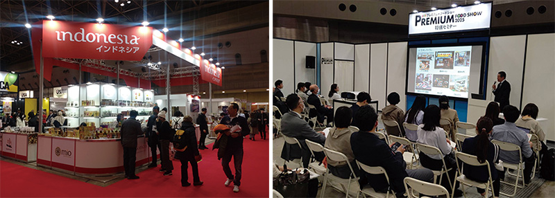 セミナー講師としてハラール食の解説をする機会も多い(写真右)。