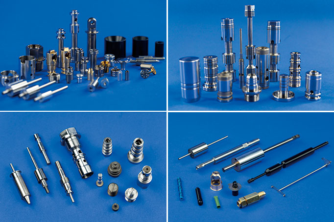 切削加工・研削加工・カシメ接合法による組み立て加工で製造している、同社製品の一部。