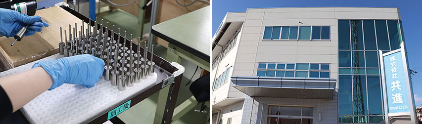 同社は1962年に父で先代の五味和人氏が創業。自動車関連を中心に建設機械や産業機械、農業機械向けの金属加工部品を手がける。共進の最大の武器は、和人氏が1997年に独自開発した「カシメ接合法」だ。同社の従来の加工方法は金属の丸棒から部品形状を削り出す方法であったが、材料のムダが多く出るほか、加工に時間がかかるため、結果として製品価格が高くなってしまった。