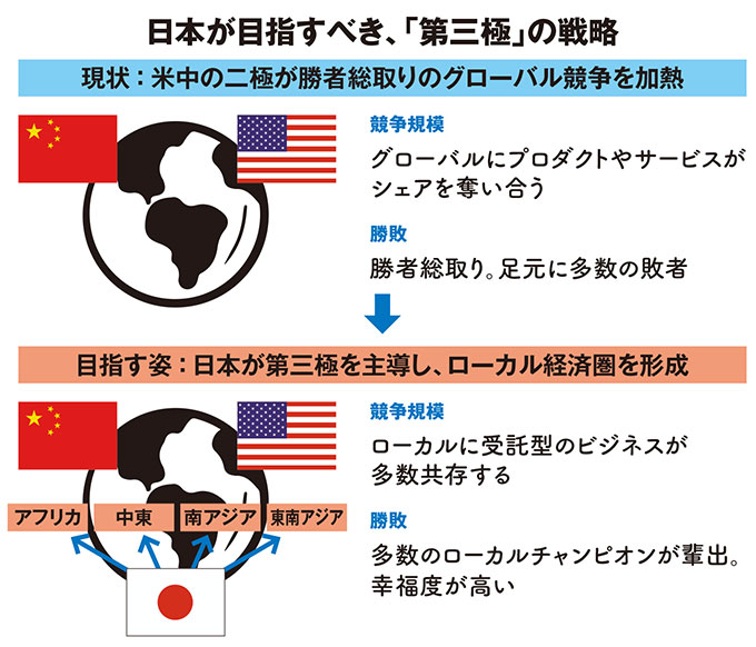 また、私たちの研究室で提供するAI講座は、アセアンやアフリカでも人気が高く、海外で展開する「GCIGlobal」は7721人以上が受講しました。アジアやアフリカでは、優秀なAI人材の流出が悩み。日本はそうした国々と連携し、AI人材の育成とともに、地元企業への定着を図っています。米中はAIの「プラットフォーム」の覇権争いに血道を上げていますが、AIの活用で付加価値を高め、アジアやアフリカのローカル経済圏で存在感を高める「第三極」の戦略が、日本の生きる道ではないかと考えています。